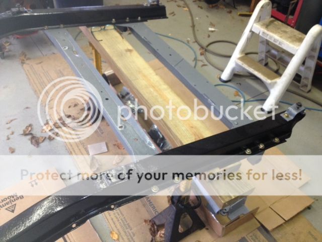 With the body off the frame, the frame has been sand blasted, mostly painted and I am in the process of installing my Fatman MII kits, Chassis Engineering rear end kits and my Chassis Engineering tranny and motor mounts.