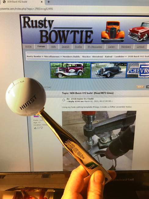 I think I might fab up an own shifter lever, it will probably look better than trying to rat rod-punk it by
