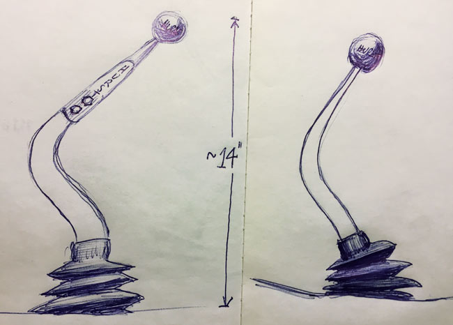 point, and in some way be connected to a very short 6" Hurst shifter and knob  that I have.