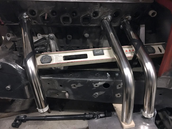 all the header tubes on the driver's side can't be at the same angle as there's not enough room for the