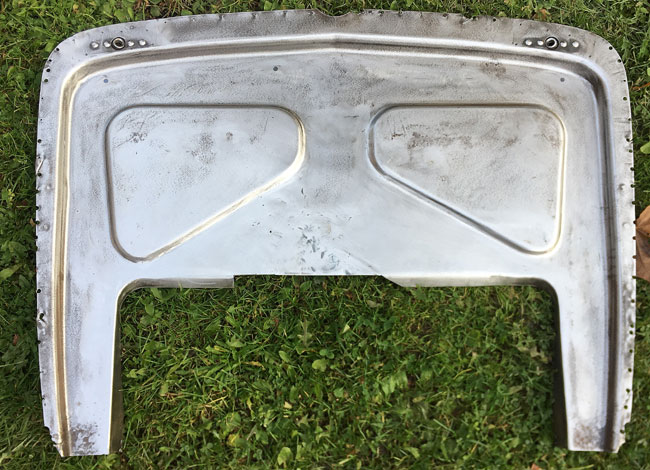 Since the frame is bent up a foot or so behid the firewall (to make the front suspension work good at my planned ride height), I had to cut some off the bottom edge of the firewall so it won't touch the frame. Then a squirt of primer to keep it from rusting.
