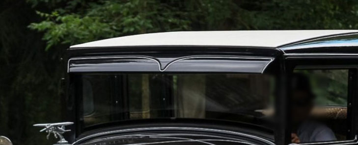 Fun thing with the visor: Inside a week of my getting it done, a friend sent a pic of a 1929 Oldsmobile for sale, and asked if I was interested. It had a very similar shape in the center. I thought I had a totally original idea.